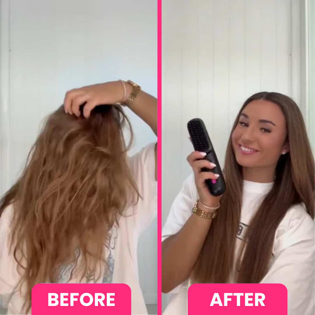 Yes, absolutely! The Wavy Brush To Go is designed to work perfectly on damp or towel-dried hair. Its advanced heating and ventilation system helps dry and style your hair at the same time — giving you smooth, shiny results without damage. For best results, gently towel-dry your hair first, then let the brush do the rest.