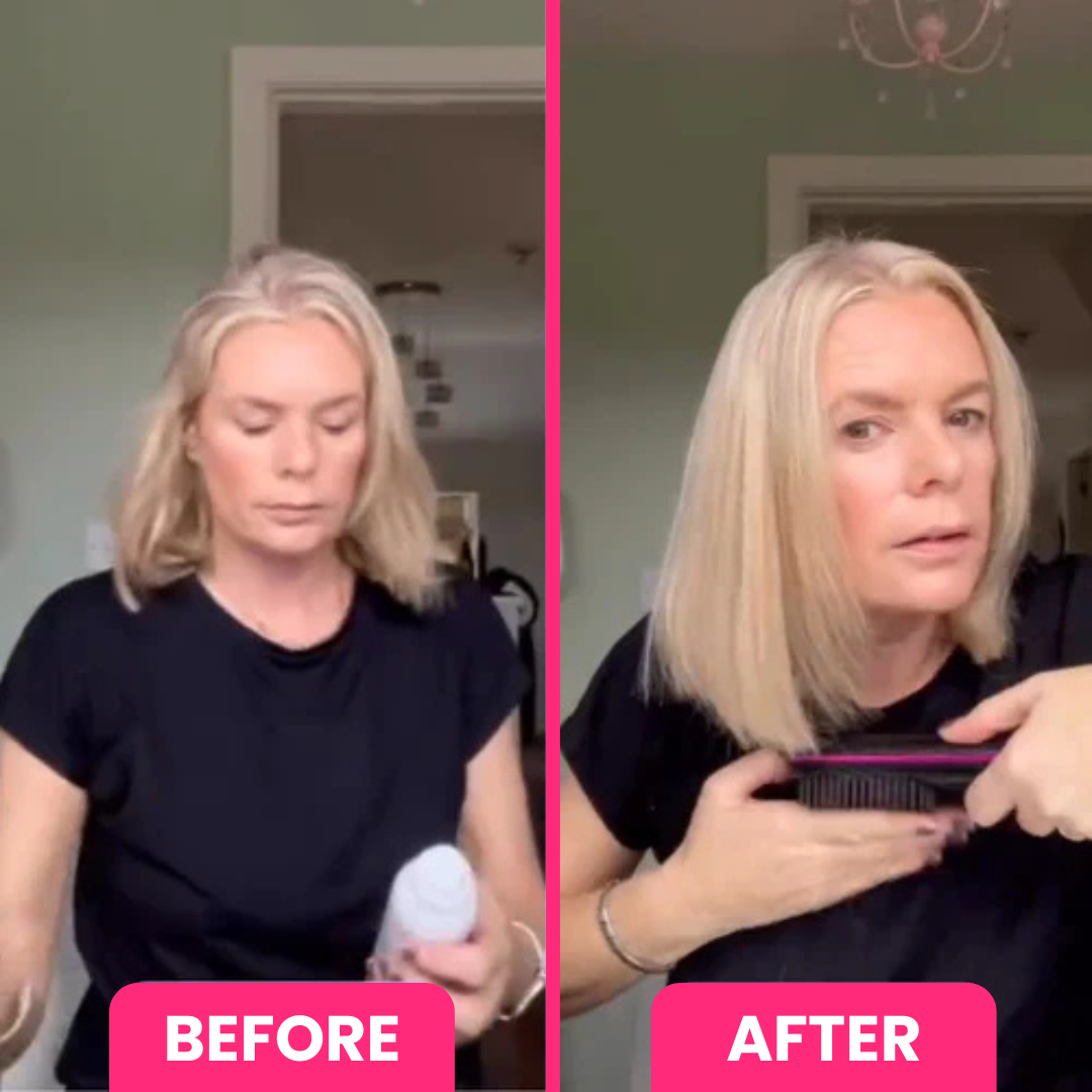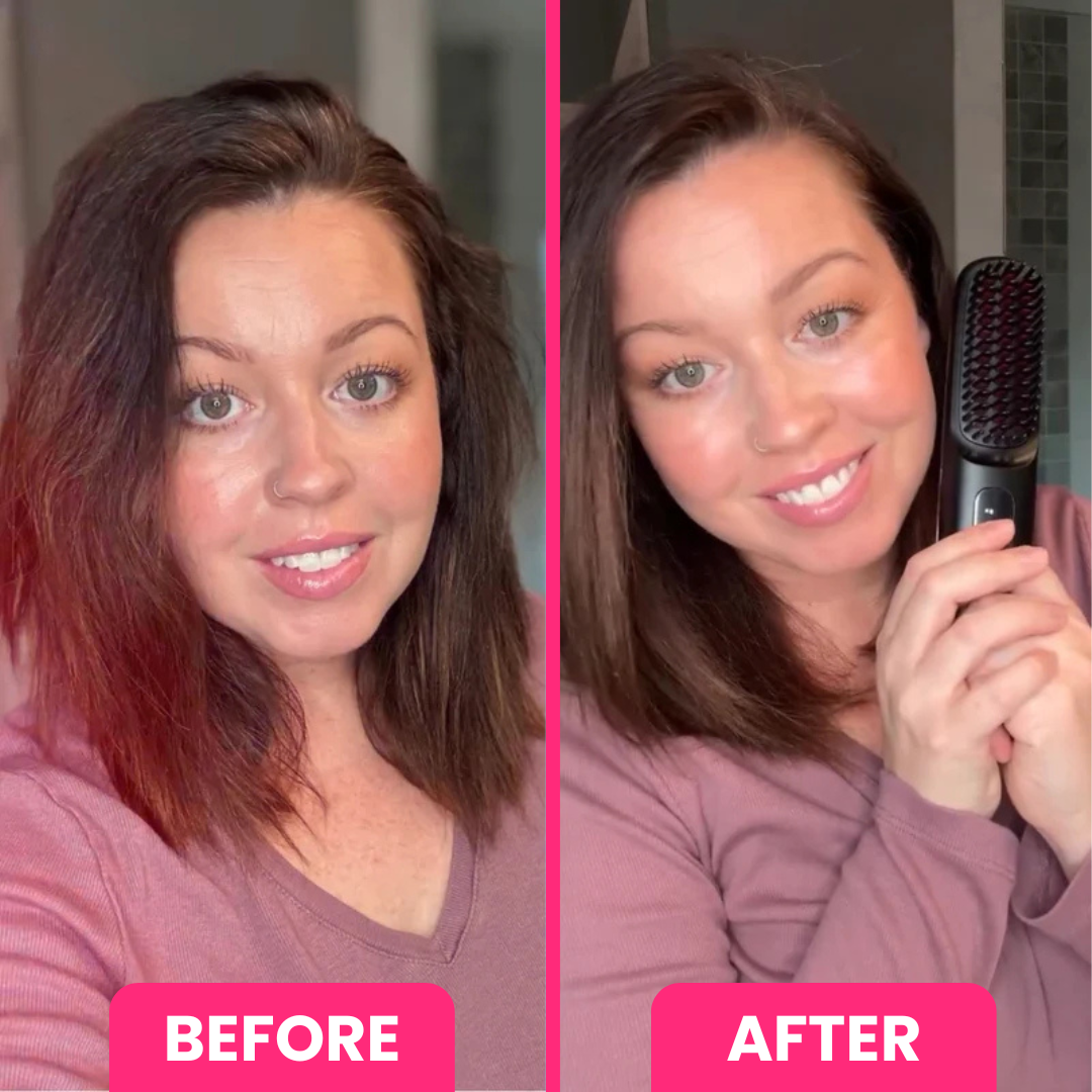 Start with clean, towel-dried hair. Section your hair, then brush slowly from roots to ends while turning the brush slightly to add volume and shape. Use larger sections for soft waves or smaller ones for extra bounce — it’s your salon blowout, made easy at home.